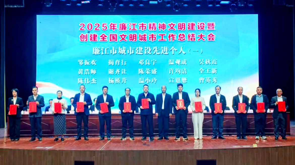 會上播放了《有一座文明城市叫廉江》文明城市宣傳片,為第七屆“全國文明城市”、第七屆“全國文明村鎮(zhèn)”、第七屆“全國文明單位”、2024年“廣東好人”、城市建設(shè)先進(jìn)集體、城市建設(shè)先進(jìn)個人頒發(fā)獎牌證書。廉江市城市管理和綜合執(zhí)法局、市公安局、羅州街道、河唇鎮(zhèn)新屋仔村、龍健高新產(chǎn)業(yè)園集團(tuán)(廣東)有限公司等單位代表現(xiàn)場作交流發(fā)言。