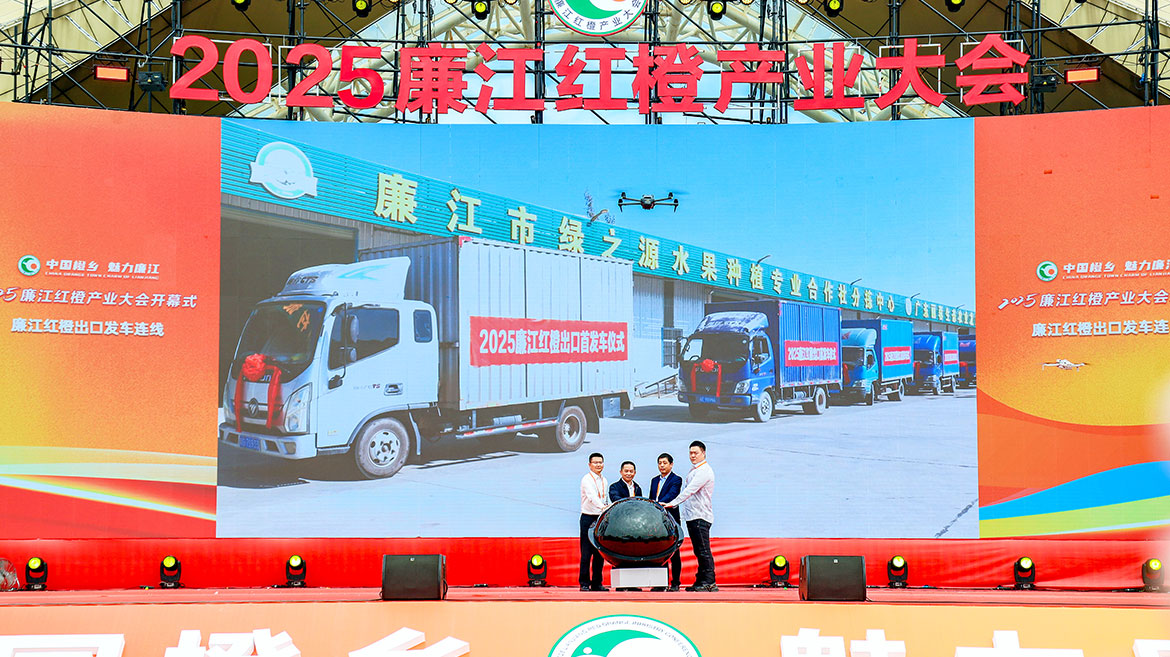 活動(dòng)現(xiàn)場(chǎng),通過視頻連線直擊青平鎮(zhèn)、高橋鎮(zhèn)、石頸鎮(zhèn)等核心種植區(qū)的豐收盛景;滿載優(yōu)質(zhì)紅橙的冷鏈車從廉江國(guó)際物流園啟程,向著馬來西亞、新加坡等海外市場(chǎng)疾馳而去。